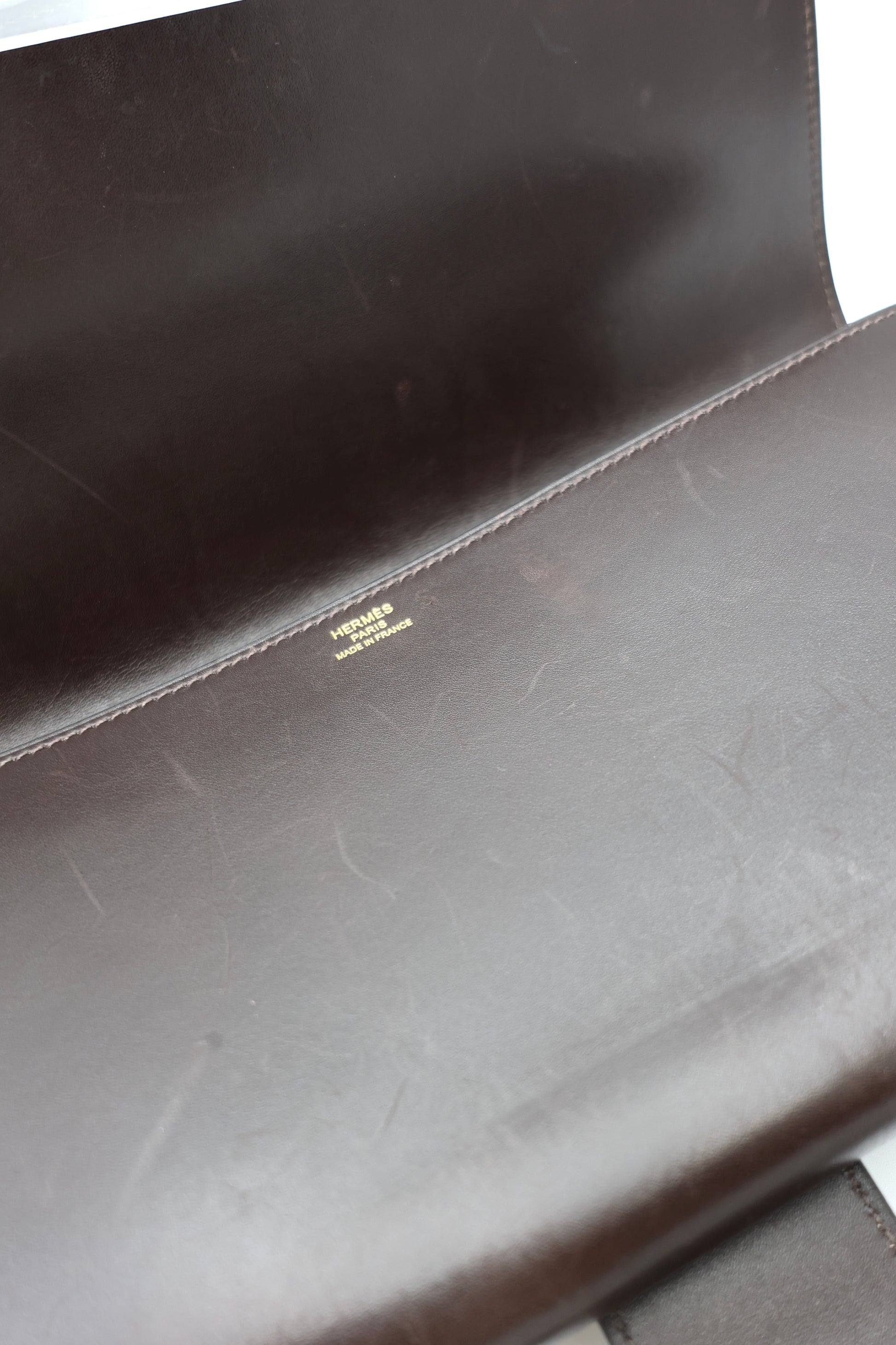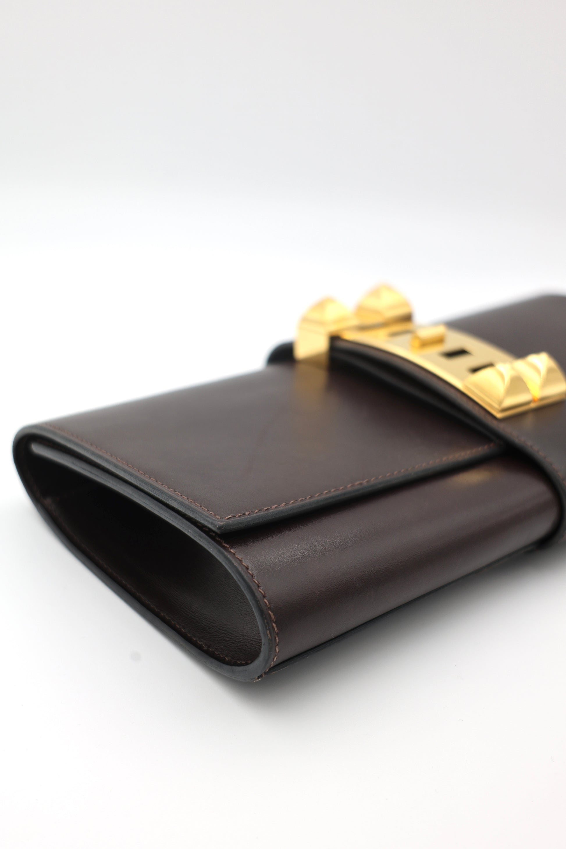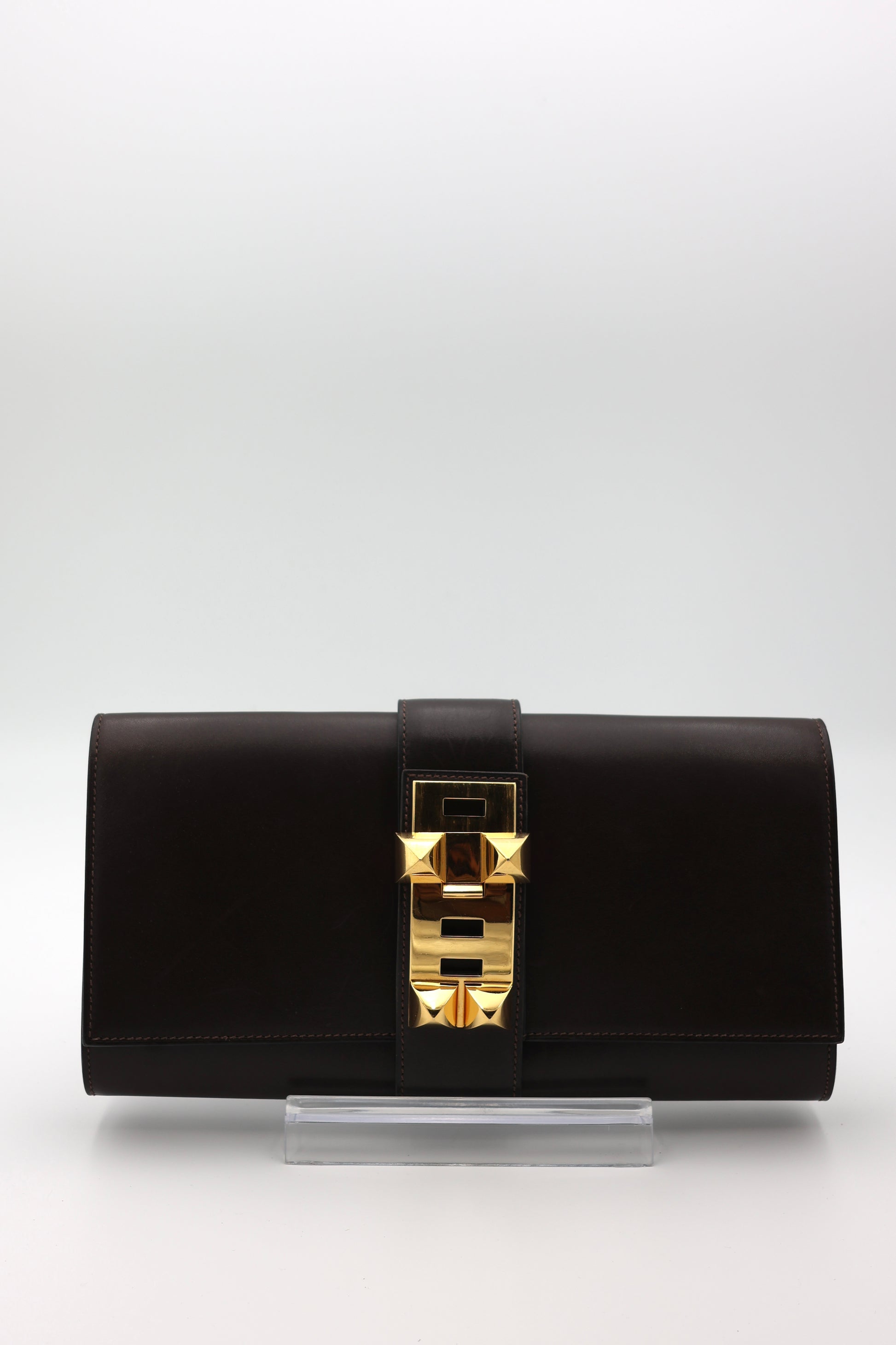Hermes Medor 29 Clutch in Chocolat Box Calfskin with Gold Hardware
