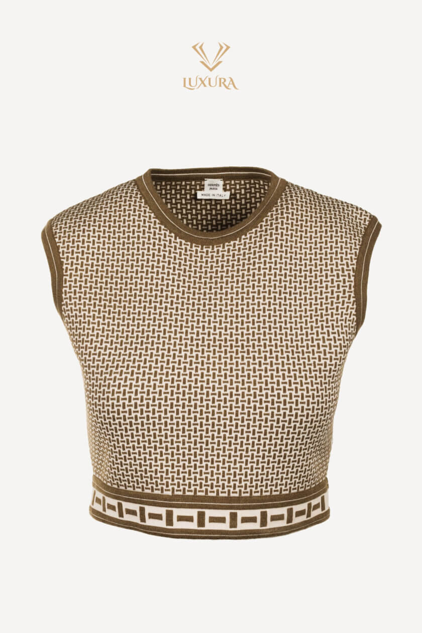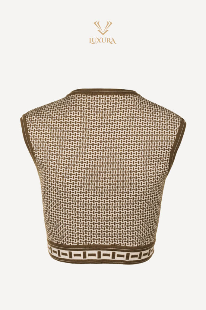 Sleeveless cropped sweater in jacquard knit with bicolor "Mosaique" motif (54% virgin wool, 41% polypropylene, 4% polyamide, 1% elastane) - Crewneck - Bottom with "Mosaique" detail Made in Italy. This piece runs true-to-size.