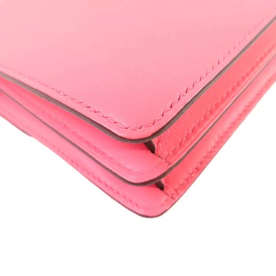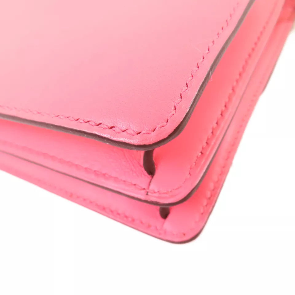 This Hermes PHW Mini Roulis Shoulder Bag is a chic and elegant accessory, crafted from Rose Azalee pink Swift leather and calfskin. The bag features Palladium hardware and a practical design with both exterior and interior pockets. Its compact size makes it perfect for daily use, while the sophisticated color adds a pop of style to any outfit.