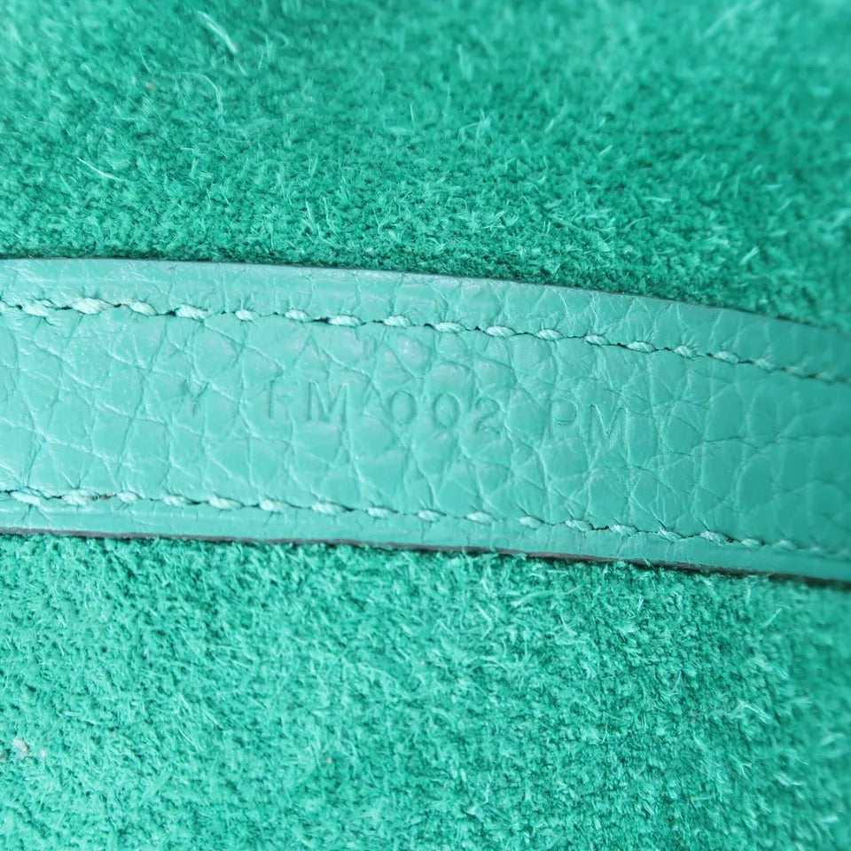 This luxurious HERMES Picotin PM Tote Bag is crafted from Taurillon Clemence leather with calfskin accents in a stunning Vert Vertigo Green color. The gold hardware (GHW) complements the rich green tones, making it a standout piece. This bag is perfect for adding a touch of elegance to any outfit. It comes with a box, dustbag, key, and cadena, ensuring you have everything you need to keep your bag secure and in pristine condition.