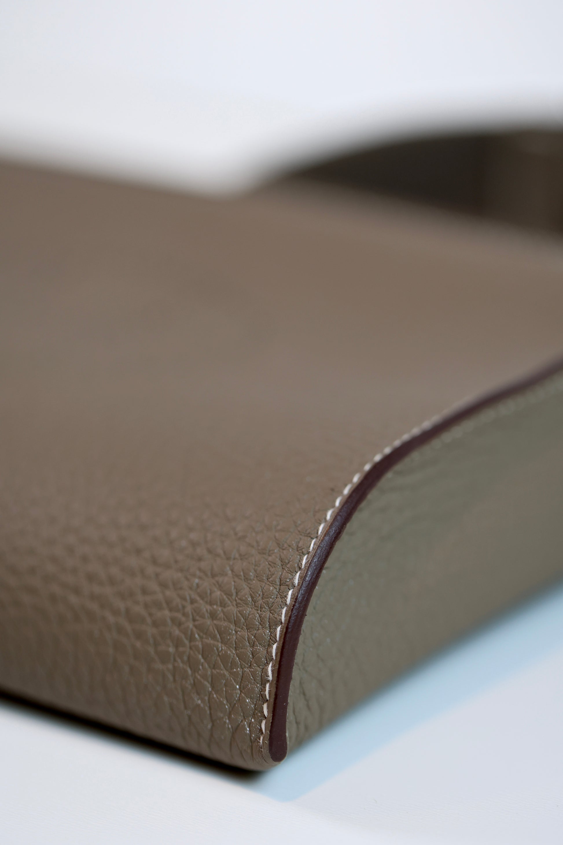 Practical yet effortlessly chic, this Hermès Vide-Poches Pouch in Etoupe Togo leather is a versatile accessory for everyday use. Designed in Hermès’ iconic neutral shade with supple Togo leather and contrast stitching, it’s perfect for organizing essentials or carrying alone as a sleek pouch.