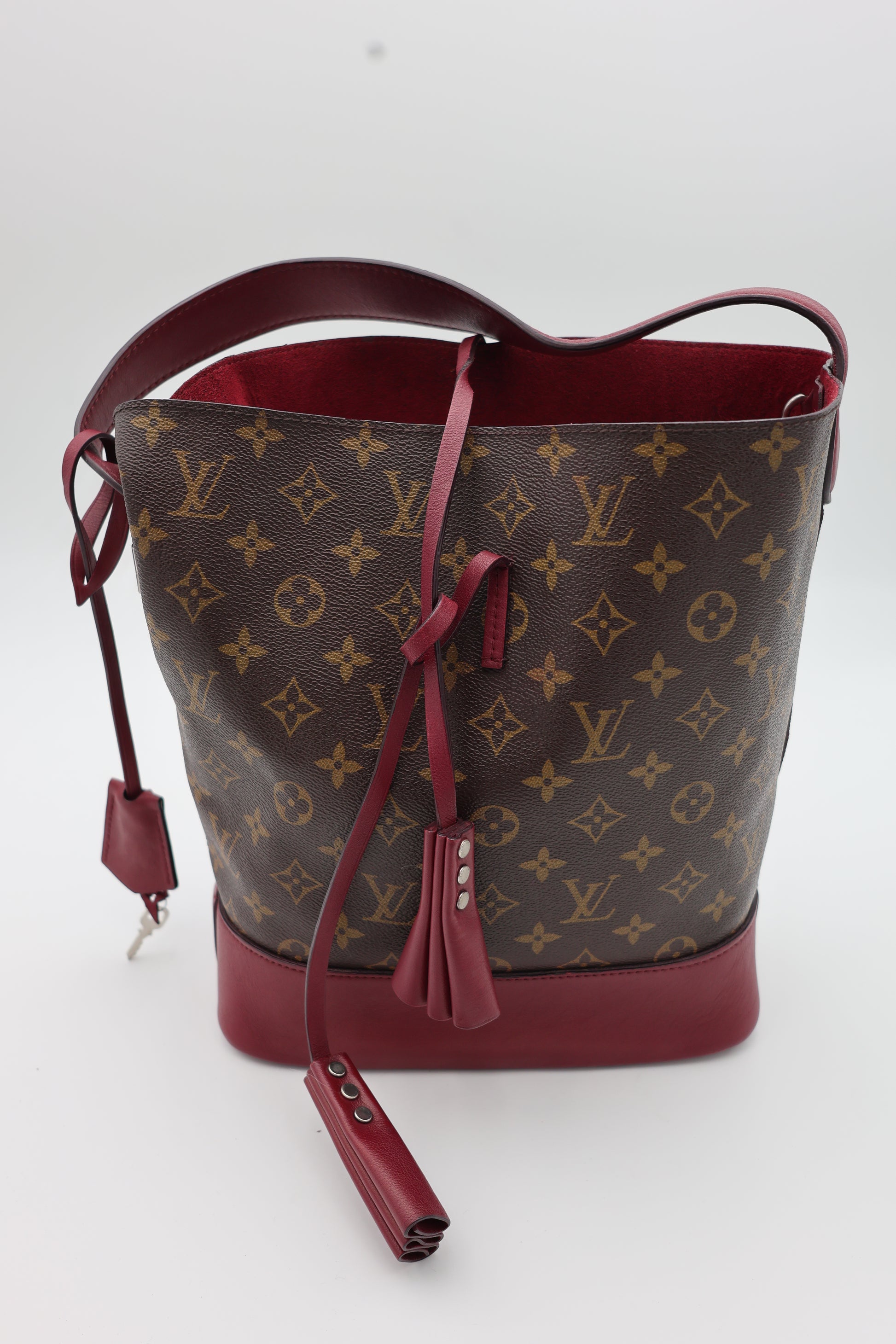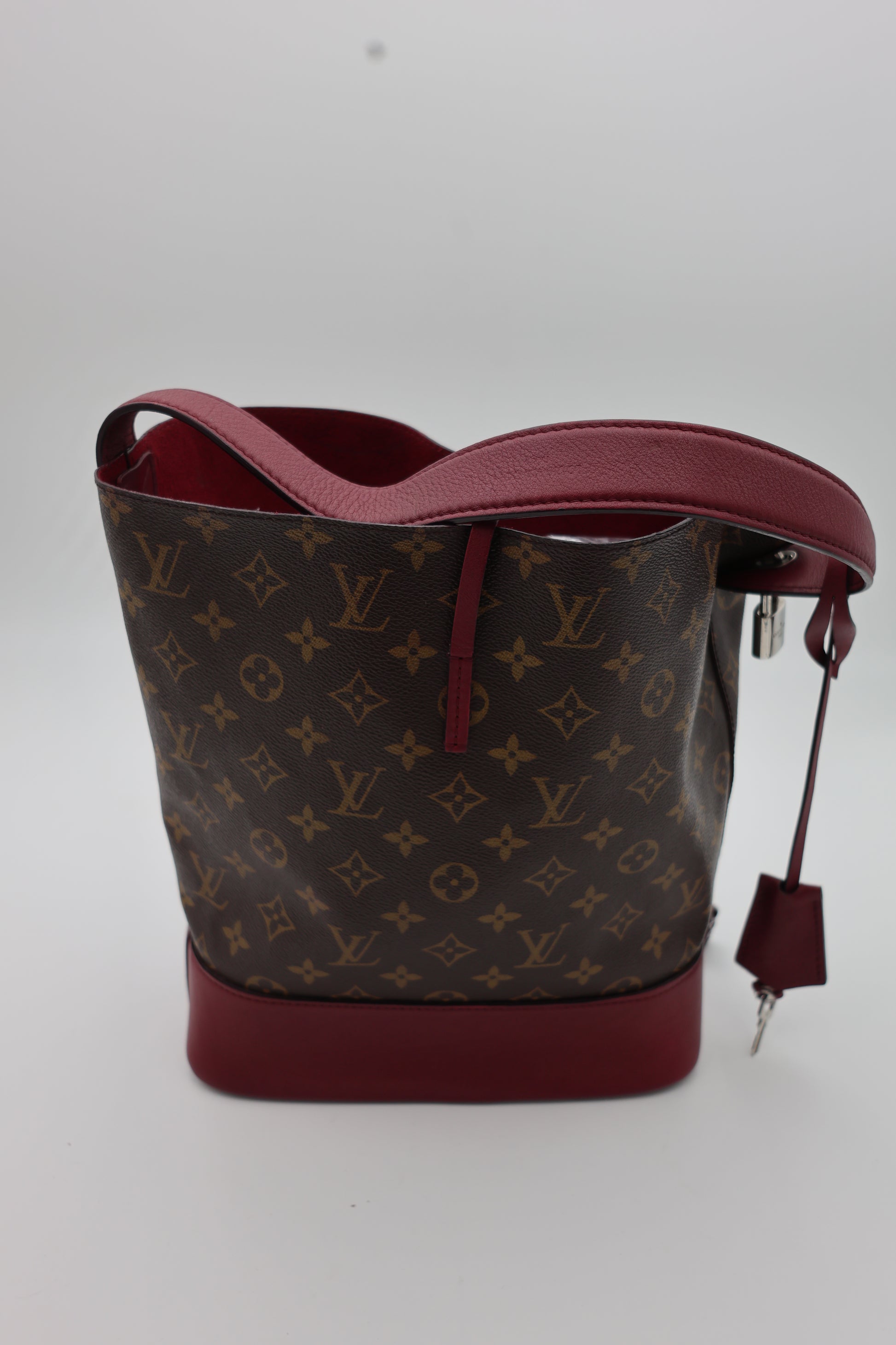 Released as part of the Spring/Summer 2014 collection, Marc Jacobs’ final season as artistic director for Louis Vuitton, the NN14 Idole GM reinterprets the house’s classic Noé bucket bag with a more structured, contemporary form. Crafted from the signature Monogram canvas, the design is anchored by a rich rubis calfskin leather base and coordinating shoulder strap that create a sculptural silhouette. The open-top construction is finished with a cross-over leather tie and tassel detail, while polished silver-tone hardware adds a modern contrast. Inside, the bag is lined with a vibrant red leather or suede interior, reflecting the collection’s bold reinterpretation of traditional Louis Vuitton codes.