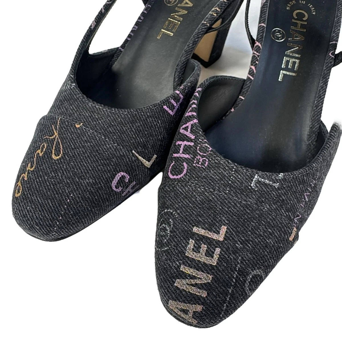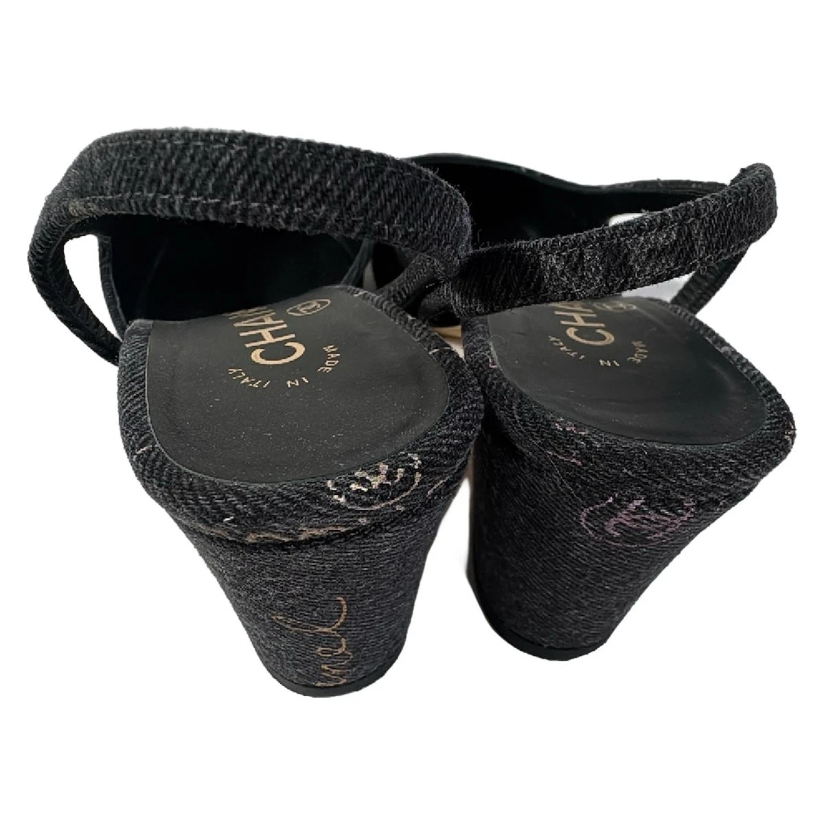 CHANEL Dark Gray Multi Denim Women's Sandals