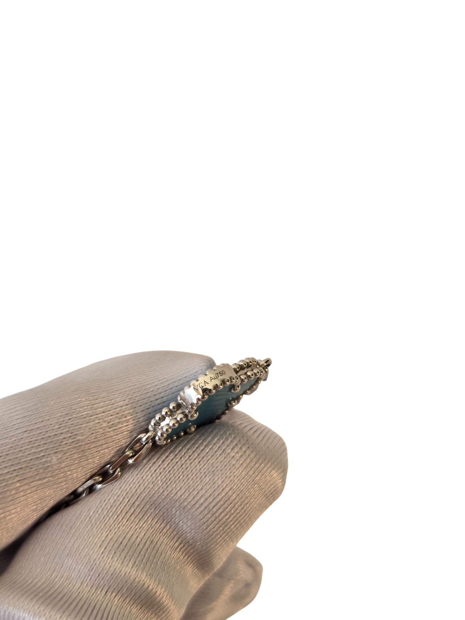 A stunning Vintage Alhambra 10 motif necklace in bright turquoise, framed in polished 18K white gold. Elegant and versatile, it can be worn long or doubled for a layered look.