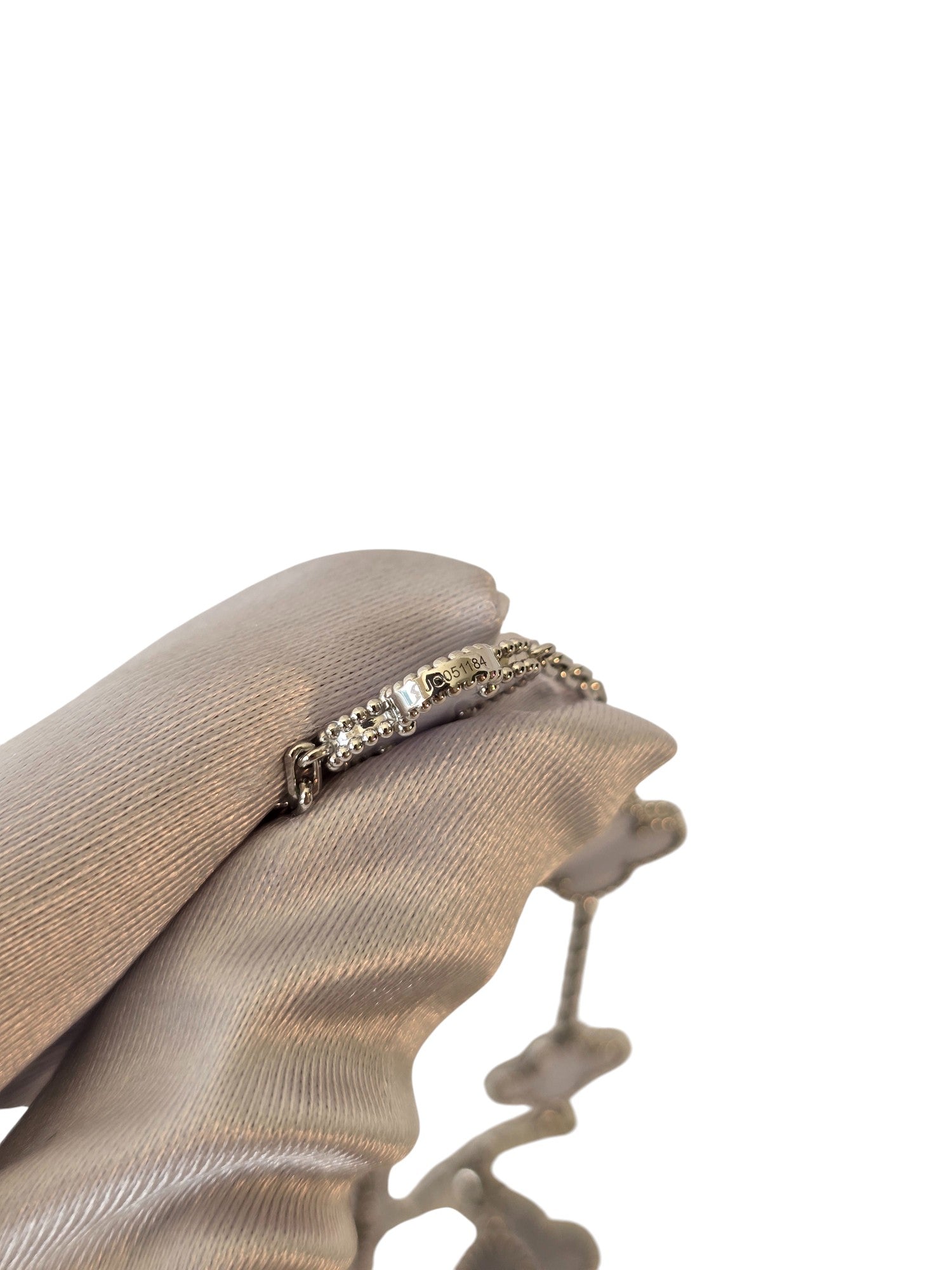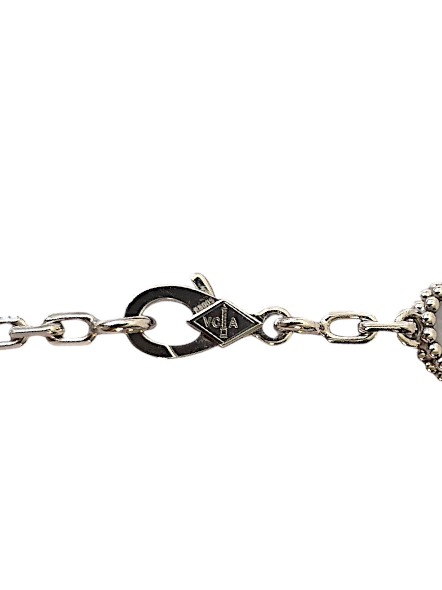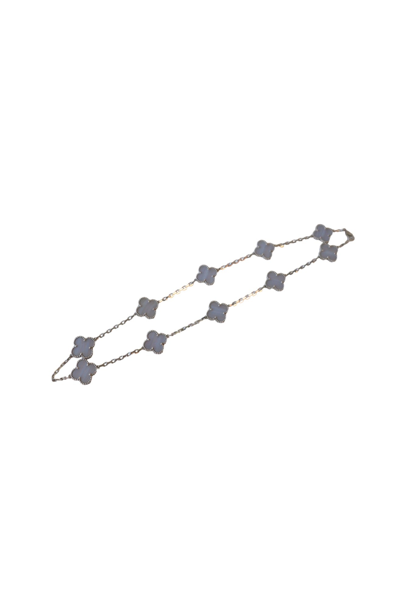 A rare and sophisticated Vintage Alhambra 10 motif necklace in luminous chalcedony, set in 18K white gold. A soft yet striking interpretation of the Maison’s most iconic design.